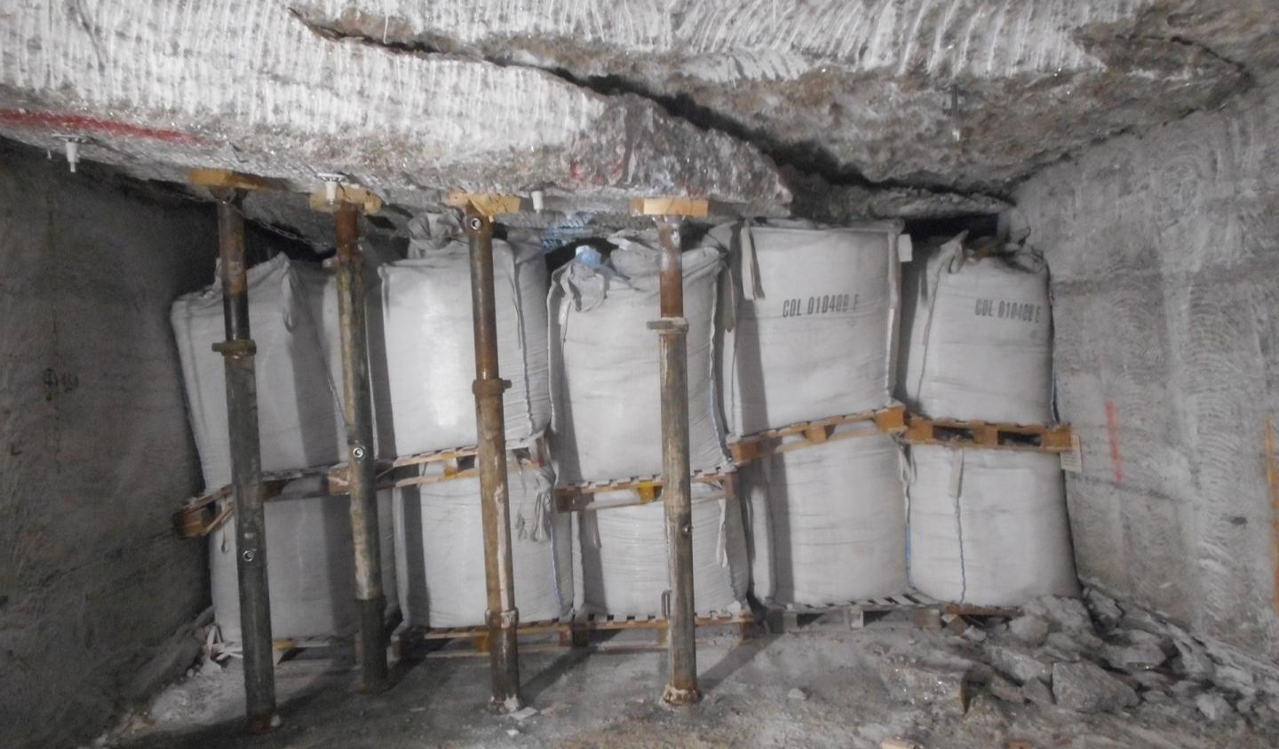 Des colis de déchets industriels stockés dans le projet Stocamine, en 2017 © MDPA