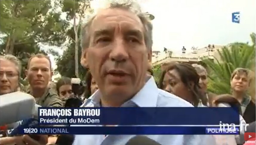 Septembre 2010 : A l’université d’été du Modem sur la Presqu’île de Giens (Ce n'était pas des vacances), François Bayrou propose un “gouvernement fictif” pour 2012. © France 3 / ina