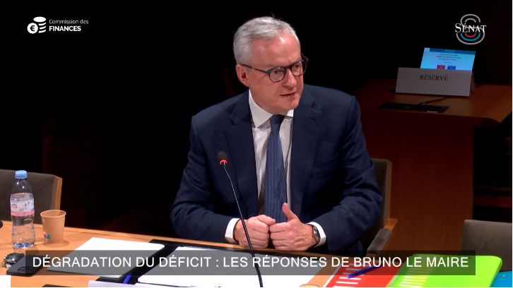 En 2024, le déficit des administrations publiques devait revenir à 4,4% du PIB. Ce sera finalement autour de 6,1%, à la suite d’une “dégradation d’une ampleur exceptionnelle hors période de crise” dixit le Haut conseil des finances publiques (HCFP). La semaine dernière, Bruno le Maire et Gabriel Attal ont été auditionnés au Sénat pour présenter leurs explications.